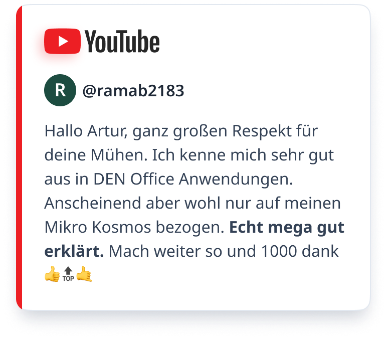 In den letzten 6 Jahren habe ich meinen eigenen Excel-Blog und Youtube Kanal betrieben, auf dem ich tausenden verzweifelten Excel-Nutzern geholfen habe, ihre Excel-Probleme zu lösen